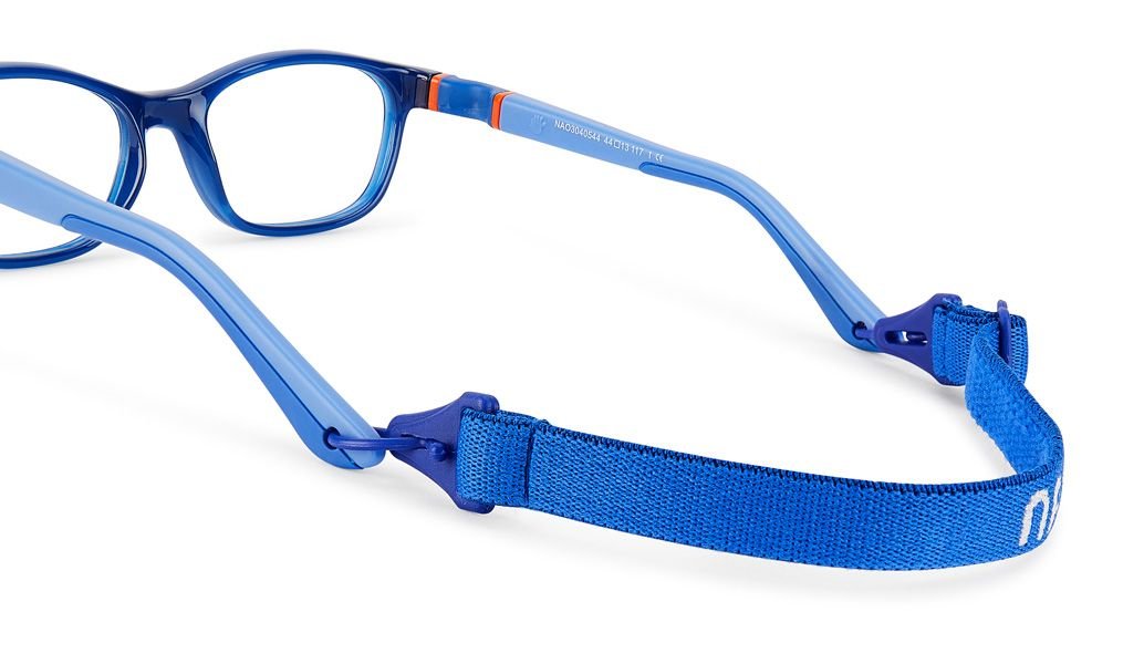Os óculos de criança Nano Camper  incluem estojo, pano de limpeza e dois elásticos ajustáveis ​​em cores a condizer.